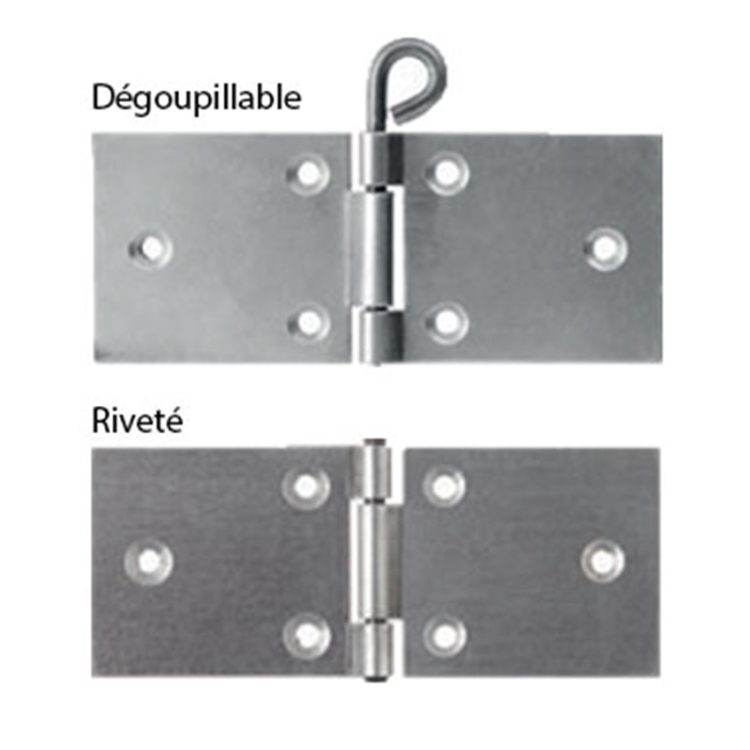 Couplets rivetés ou dégoupillables – charnière, accessoire d’une hauteur de 35 à 70mm et d’une longueur de 70 à 135mm